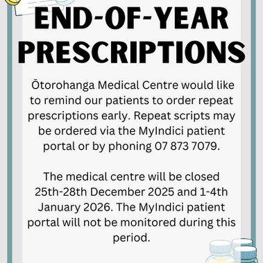 Alternative options when we are closed are Mahoe Med in Te Awamutu (open 8am-8pm weekdays and 9am-3pm weekends and public holidays), or Anglesea Clinic in Hamilton (open 24 hours).